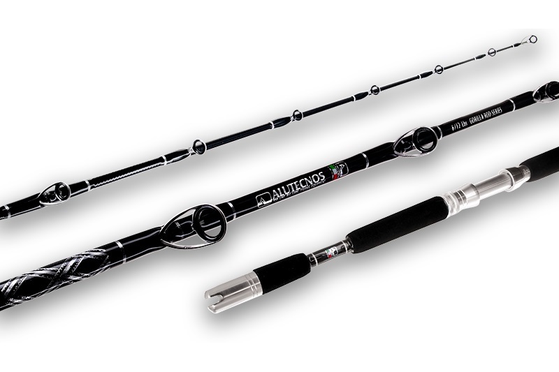 Alutecnos Gorilla Rods, pensata come perfetto abbinamento alla serie di mulinelli Gorilla. Linea estetica elegante in nero e silver, porta mulinello Alutecnos silver PM00, cinque anelli Fuji Serie K a doppia basetta con doppia legatura e cinque anelli Fuji Serie K mono basetta più relativo puntale.