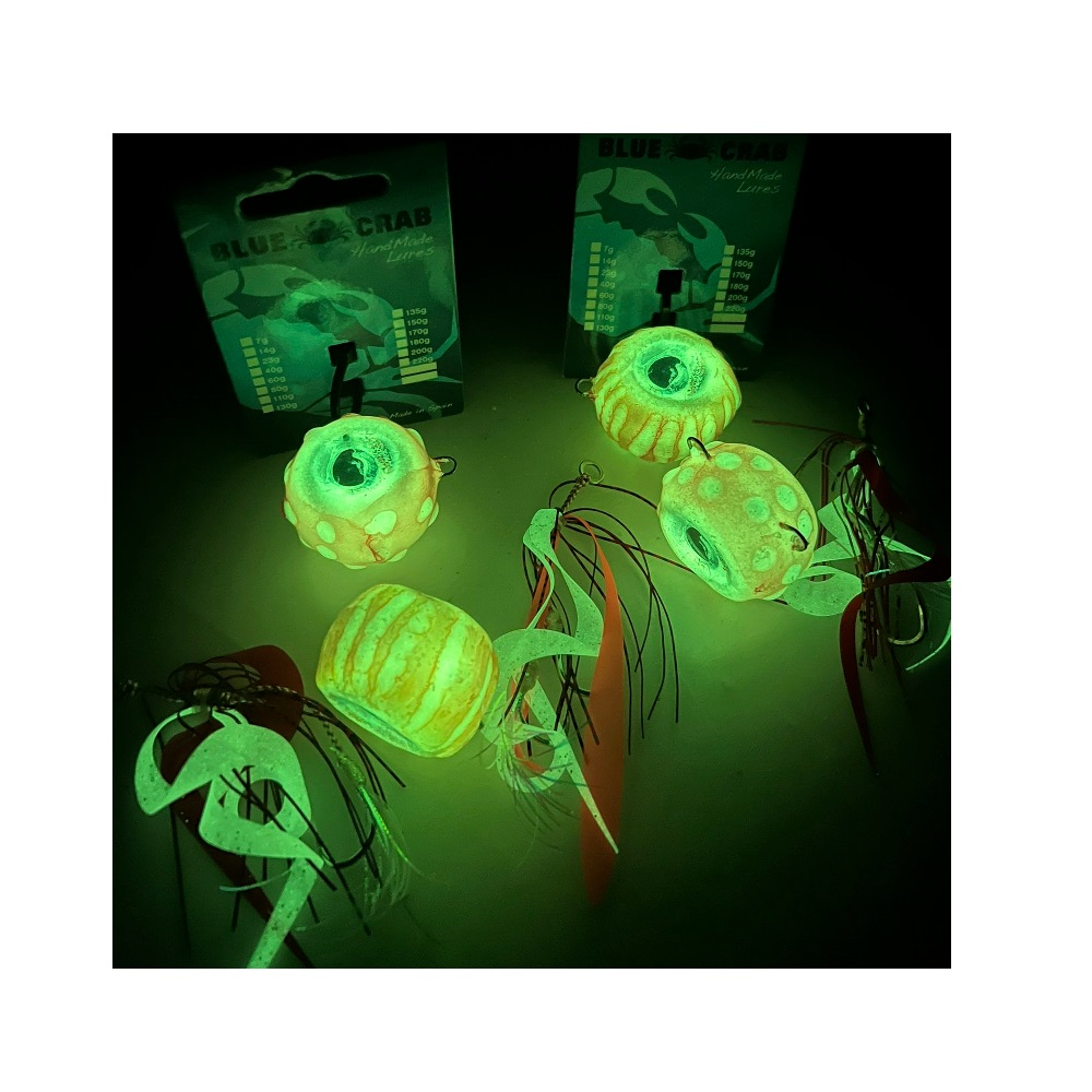 Esca in piombo fatta a mano a forma di occhio in 2 livree naturali, che imitano un polipo o un calamaro.